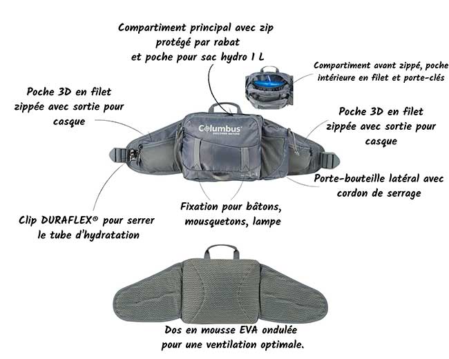 La ceinture d’hydratation Hip Belt 1 L est idéale pour le trecking, le vélo et toute autre activité plein air.