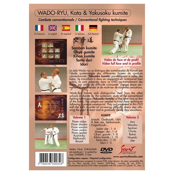 Offre collection regroupant les 4 DVD Wado-Ryu multi-angles avec Hiroji FUKAZAWA représentant 15 Kata, plus de 50 Bunkaï et 51 Kumité filmés de face et de profil : vidéo de face et de profil, décomposition des phases complexes, étude des Bunkaï, diagramme au sol, liste des mouvements, origine, intérêt et spécificité des Katas.